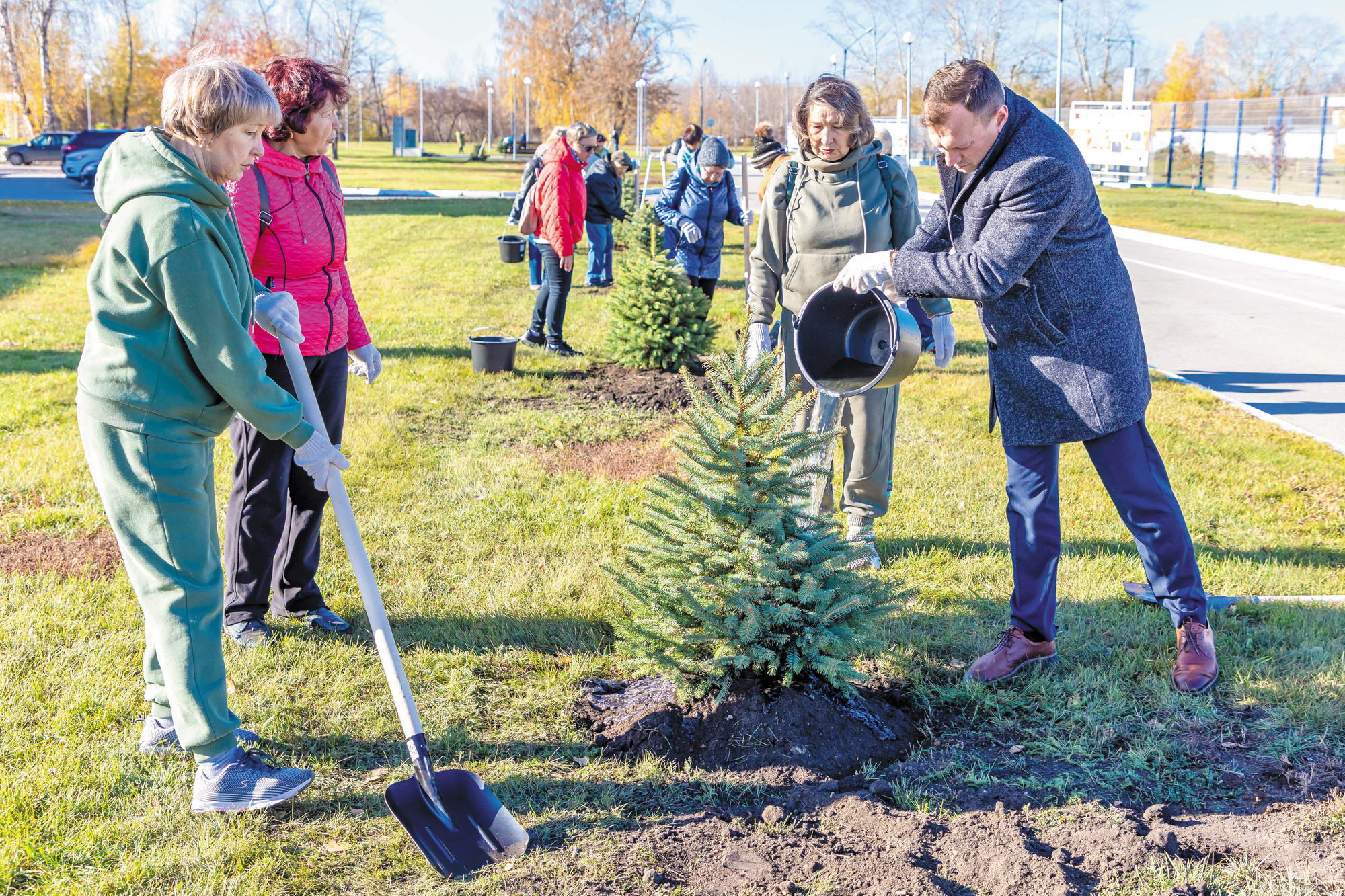Депутат городской думы Сергей Чижов принял участие в посадке деревьев возле ДК «Юность», 2023 год