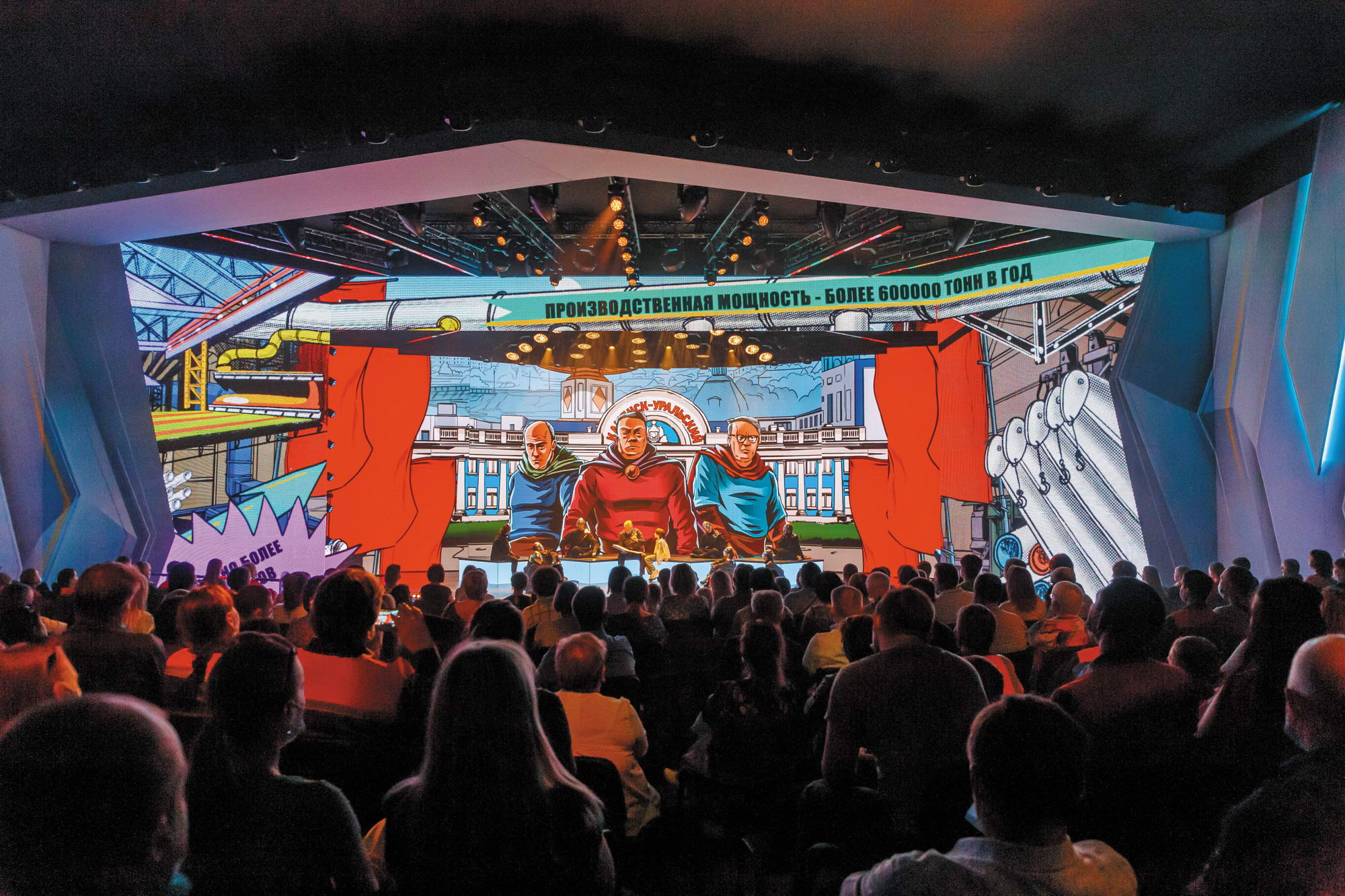 Синарские трубники смогли насладиться уникальным театральным действием прямо на территории предприятия. Специально к юбилею Компании в трубоволочильном цехе №2 (В-2) в короткий срок была возведена крытая концертная площадка вместительностью до 300 зрителей